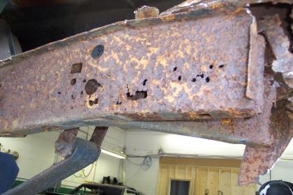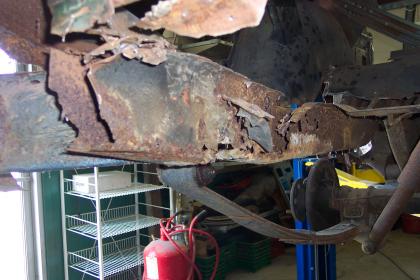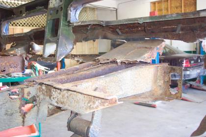 Close up of passenger side rear frame rail. |