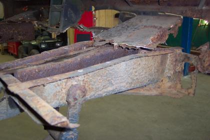 Driver's side rear frame rail and bumper support. |
